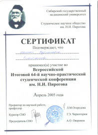 • 2004-2014 гг. – многократные выступления на научных конференциях (сертификаты, дипломы, публикации);