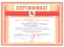 • 2013 г. – доклад на международной конференции «Гаазовские чтения» (Москва, РФ) (сертификат, диплом, публикация);