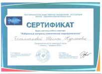 • член ассоциации ESPE, выступление с докладом ESPE Caucasis and Central Asia, 2015 г.;
