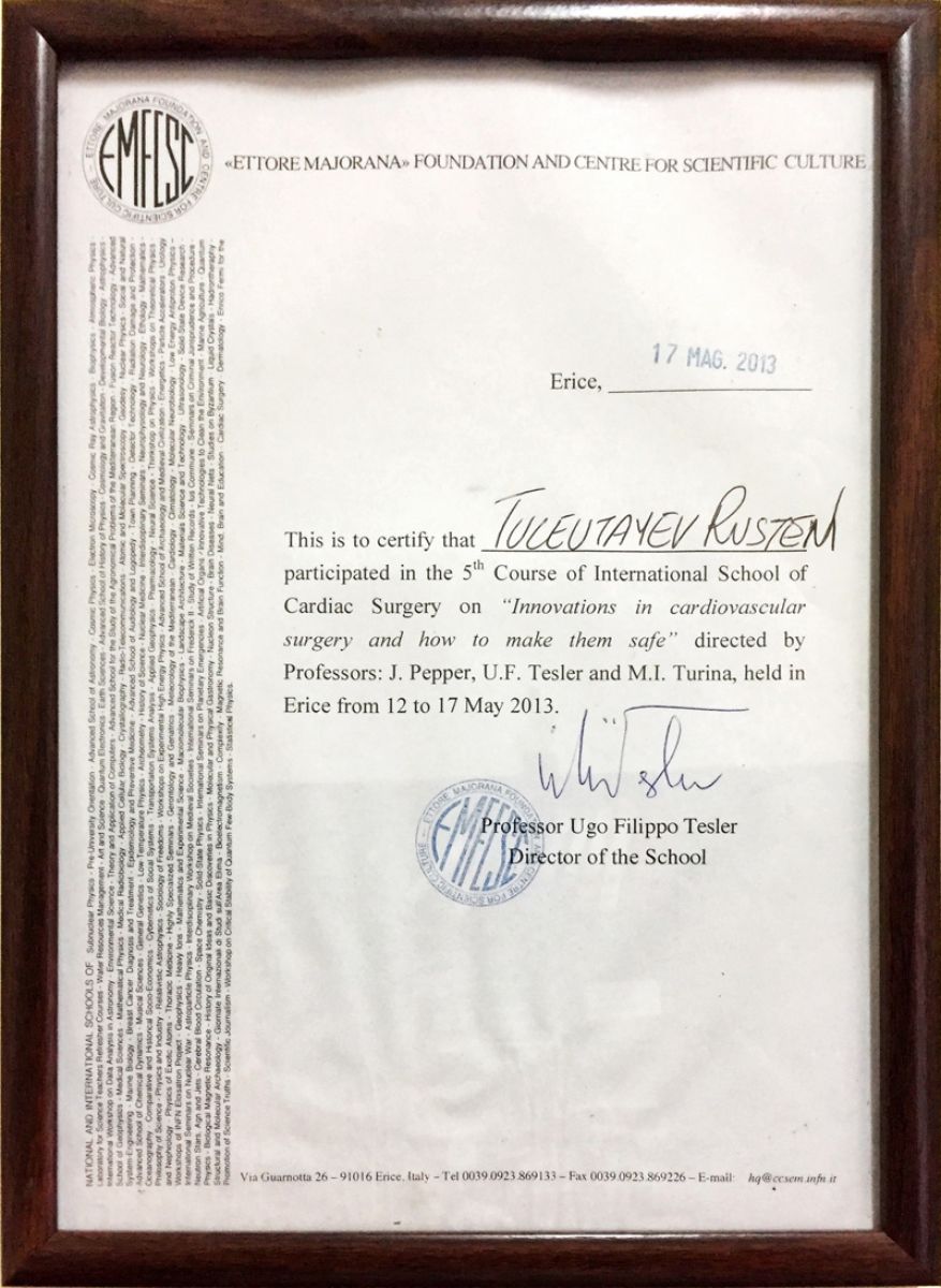 • 2013 г. – тренинг-курс по реконструктивной хирургии митрального клапана (Вена, Австрия);