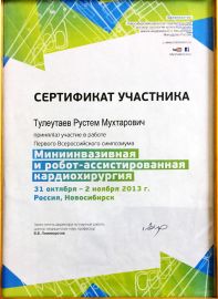 • 2013 г. – тренинг-курс по минимально инвазивной и робот-ассистированной кардиохирургии, (Новосибирск, РФ);