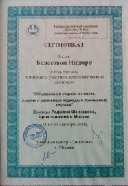 2012 ж. – докторлар Сачиндра және Бавиши Джошилердің «Жаңа парадигмалар мен жағдайларды алу әдістері» тақырыбындағы гомеопатиялық семинар (Мәскеу, РФ);