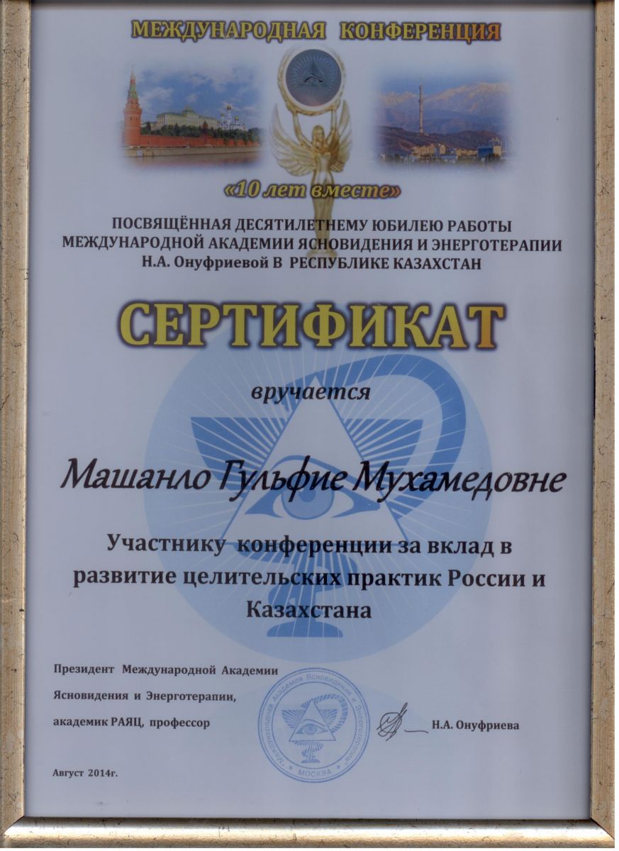 - Халықаралық көріпкел және энерготерапия академиясы (Москва, РФ);