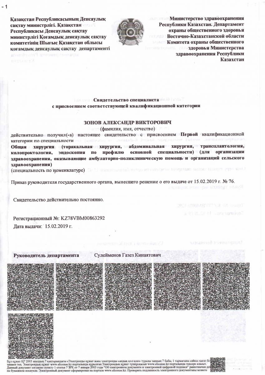 • 2013 г. – Консультативно-диагностическая поликлиника № 3 (Семей), врач-хирург.